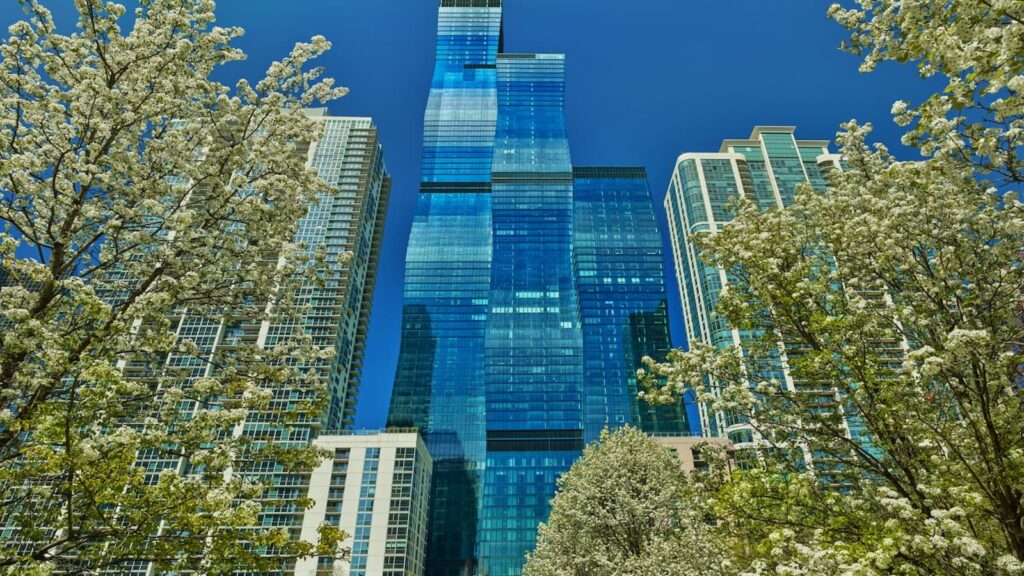 Inside, the hotel’s interiors combine contemporary elegance with subtle references to Chicago’s architectural heritage. Warm materials, refined textures, and expansive windows create an atmosphere that feels both intimate and sophisticated.
